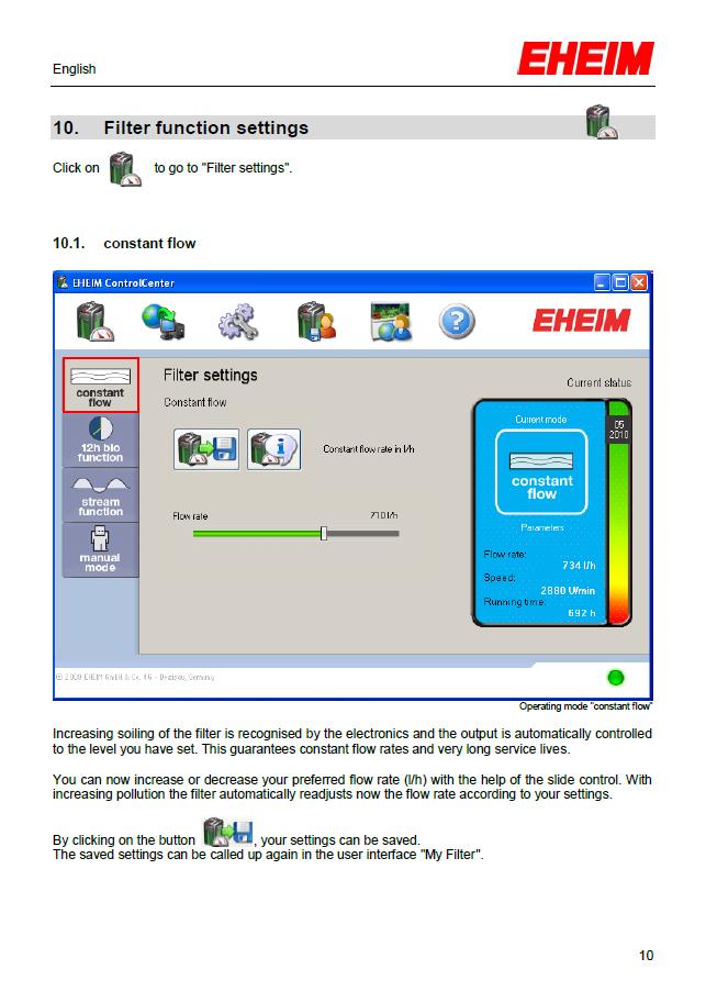 Með dælunum tók ég Eheim Interface með því er hægt að stjórna dælunum úr tölvu þar stjórnar þú vatnsmagni l/h og sérð hvenær þú þarft að þrífa dæluna. Eheim mælir með því að dælurnar séu ekki keyrðar á nema 50 -70% afköstmum þú velur vatnsmagnið og dælan heldur því það er að segja þegar drullan safnast í dæluna bætir hún við afköstin til þess að ná uppgefnu magni. Í mínu tilfelli gefur tölvan upp að ég þurfi að þrífa dælurnar eftir 7 mánuði. Aðrir möguleikar eru að framleiða öldugang (vont veður) og að láta þær dæla minna á nóttinni en á daginn (eins og vatnsrennsli er í öllum ám ). Þetta er klárlega ekki nauðsynlegt en ferlega þægilegt að sjá statusinn á þeim og geta stjórnað þeim úr tölvunni