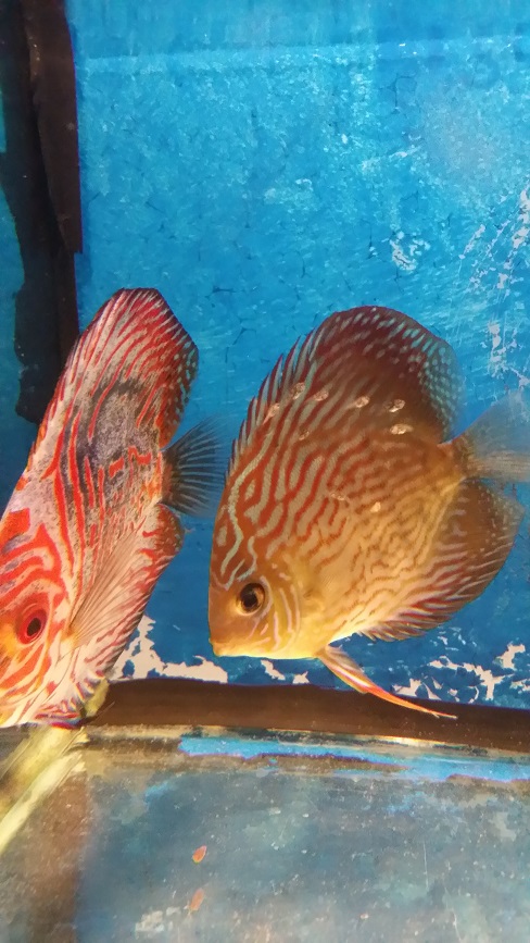 her er mynd um discusa með seðir foreldrar eru Tiger Pigeon Blood Discus og Red Turquoise Discus :góður: