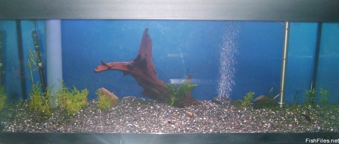 Sæll. Ég er með hann í 120l búri. Ég kem á Bíldudal kanski um næstu helgi, en ef ekki þá, þá um þarnæstu helgi.