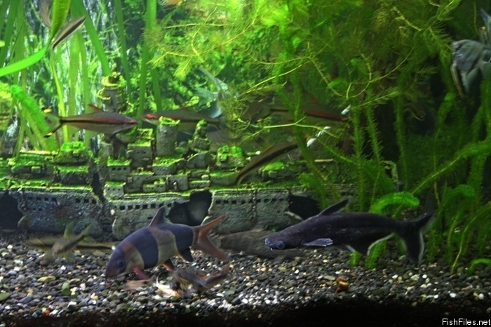 Þótt stæðsta Trúðabótían sé stór étur hún engan fisk,,,, eða hefur ekki gert þessi ár sem ég er búinn að eiga hana :D , en hvað hákarlarnir og Polleni_inn endast lengi án þess að fækka í búrinu veit ég ekki, það kemur í ljós, þegar þeir eru búnir með svona 50% (60 til 70 fiska) hendi ég þeim út, gef bara kettinum þá (bull), og svo er ég með 4 Black Ghost, og er einn þeirra orðin talsvert stór, get ábyggilega ekki verið með hann í mörg ár enn :lol: .