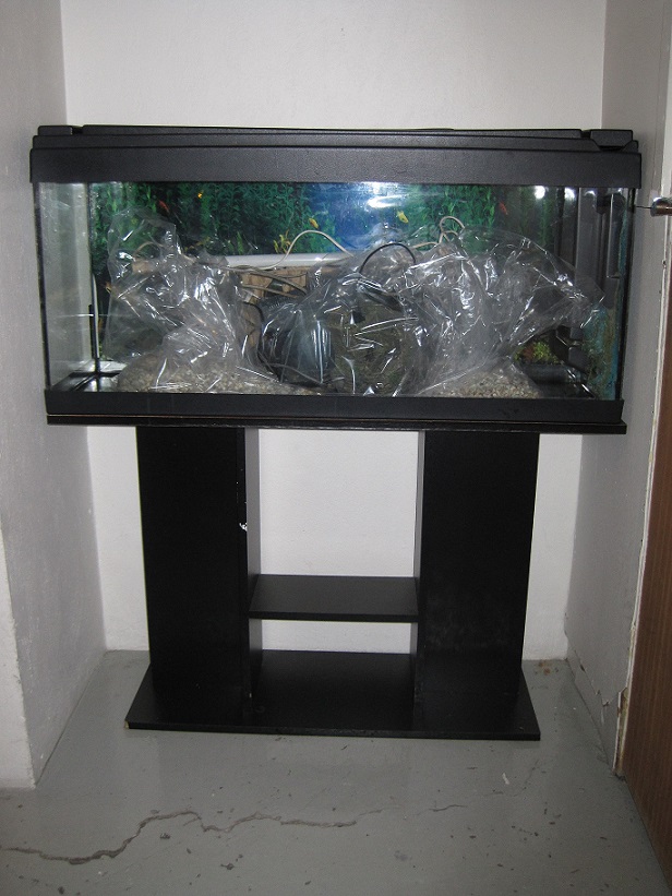 Búrið er 10 ára gamalt og var farið að leka aðeins efst svo ég fyllti það ekki alveg á endanum. Hafði ekki reynslu til að treysta mér í taka það í sundur og líma aftur.