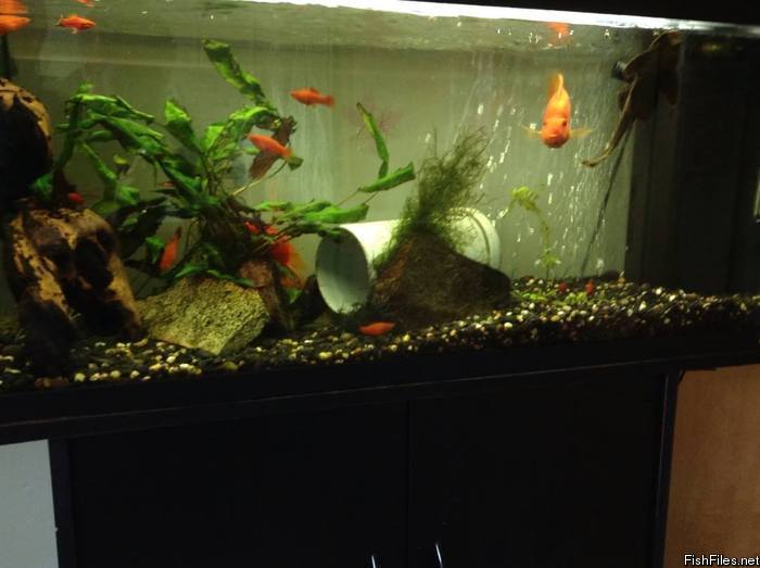 Sumsé, annar fiskurinn er Blood Parrot og hinn, af útlitinu að dæma, er annað hvort Amphilophus citrinellus (Midas síkliða) eða The Red Devil Cichlid Amphilophus labiatus. Hvað segja sérfræðingarnir? Jakob?