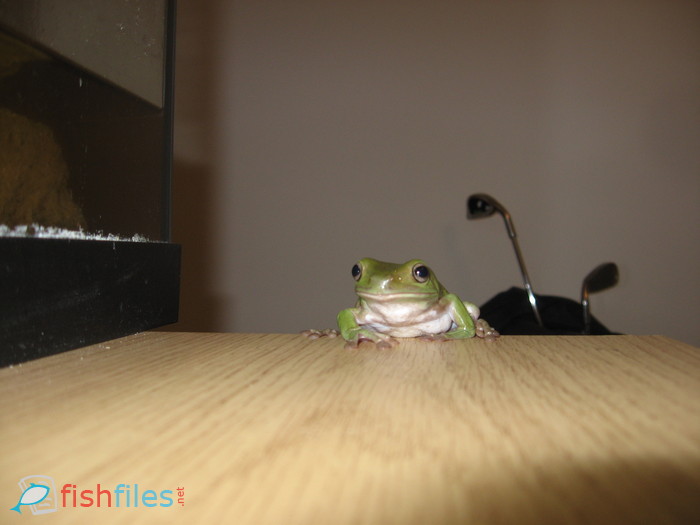 ég á líka green tree frog en hún/hann er ekki svona feitur... hún er með svona öfug kisuaugu ekki kringlótta (augasteina) mér var allavega seld hún sem green tree frog... hvernig sér maður kynið á þessu? er þinn strákur eða stelpa?