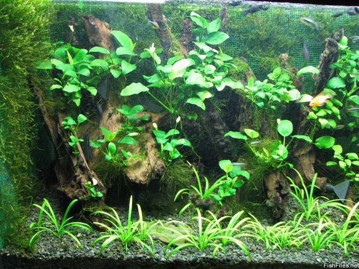 Þessi grasplanta er Echinodorus tenellus, dverg sverðplanta. Dreifir sér eins og henni sé borgað fyrir það. Ég fékk þetta í dýragarðinum en er svosem alveg til í að selja eitthvað af þessu. Hvernig hljómar 800 kall fyrir búnt með 5 millistórum plöntum í?